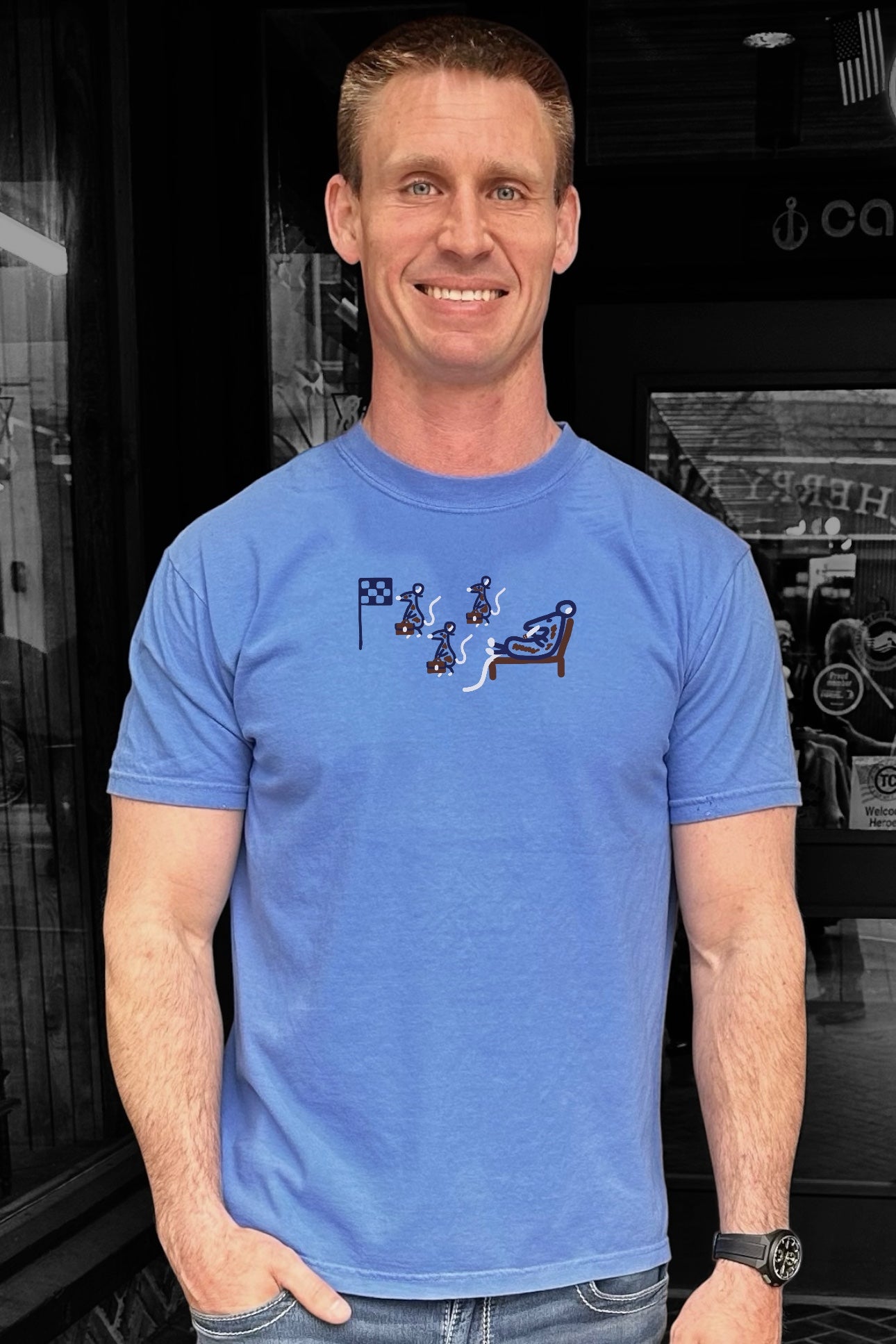 Soft, durable, pigment dyed 100% ring spun cotton superior shirts. Designed by Ed Roth and printed by his grandmas in the basement in Traverse City, MI